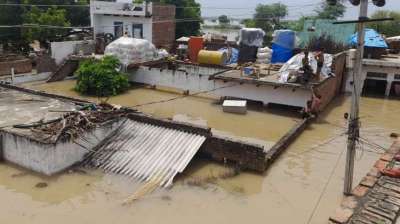 चंदौली में नहर टूटने से गोधना गांव जलमग्न, नावों से हो रहा आना-जाना