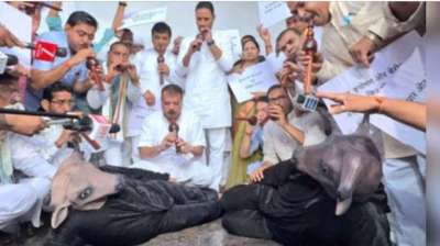 कांग्रेस ने विधानसभा में भैंस के सामने बीन बजाकर किया प्रदर्शन