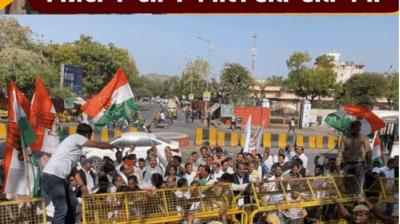 नगर निगम पर प्रदर्शन, बैरिकेडिंग के बीच कार्यकर्ताओं ने किया हनुमान चालीसा का पाठ