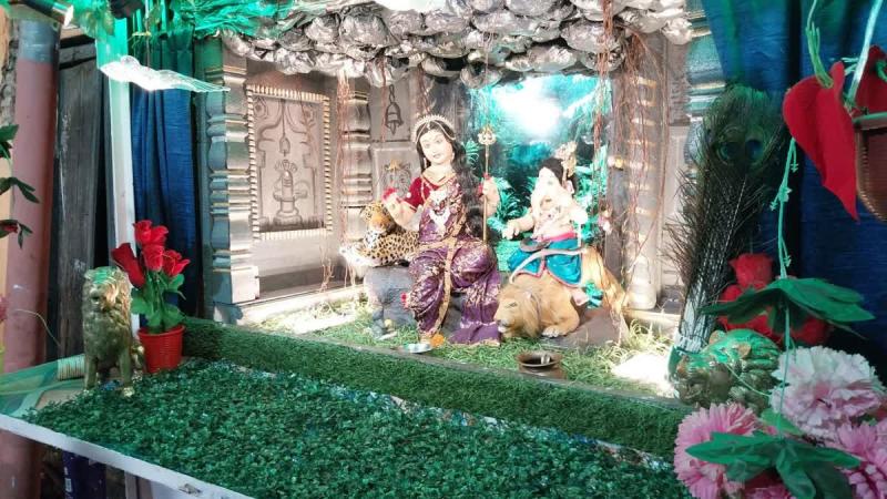 झांकी में भगवान गणेश के साथ मां पार्वती
