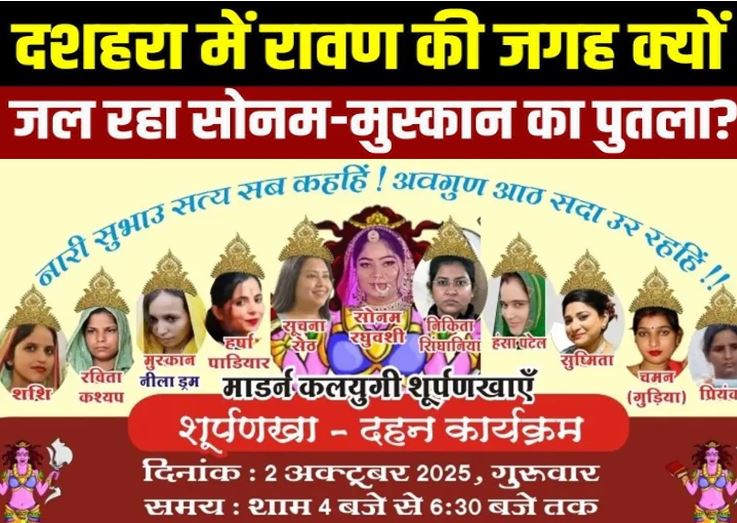 इंदौर: इस बार विजयादशमी पर शहर में एक अलग ही तरह का पुतला दहन देखने को मिलेगा। इंदौर की संस्था पौरुष ने दशहरे पर रावण की जगह 11 मुखी शूर्पणखा का पुतला जलाने का फैसला किया है। खास बात यह है कि इस पुतले पर उन 11 महिलाओं की तस्वीरें होंगी, जिन्होंने अपने पति या बच्चों की हत्या जैसे गंभीर अपराध किए हैं। इनमें सबसे चर्चित नाम सोनम रघुवंशी और मुस्कान का है। राजा रघुवंशी हत्याकांड ने पूरे प्रदेश को हिला कर रख दिया था। इंदौर के ट्रांसपोर्ट कारोबारी राजा रघुवंशी की शिलांग में हनीमून के दौरान पत्नी सोनम ने अपने प्रेमी और साथियों के साथ मिलकर बेरहमी से हत्या कर दी थी। वहीं, मुस्कान नाम की महिला ने अपने पति की हत्या कर उसकी लाश नीले ड्रम में छुपा दी थी। ऐसे कई मामले देशभर में सामने आए हैं, जहां शादी के बाद पुरुषों की सुरक्षा पर गंभीर सवाल खड़े हुए हैं।