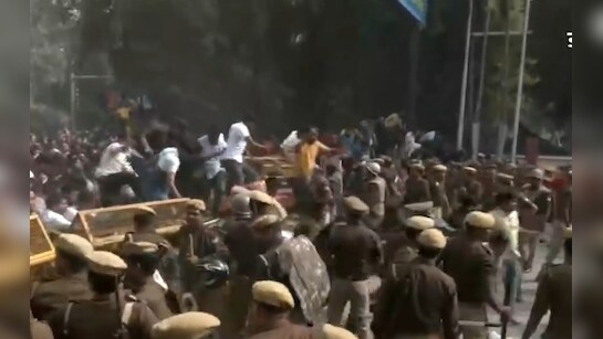 पुलिस से भिड़े कांग्रेसी कार्यकर्ता, धक्का-मुक्की