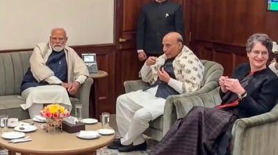 संसद सत्र के बाद ‘चाय पर चर्चा’, PM मोदी-राजनाथ सिंह और प्रियंका गांधी एक साथ आए नजर, खूब लगे ठहाके