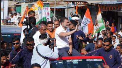 खुली जीप में राहुल गांधी का जोरदार रोड शो, उमड़ा जनसैलाब